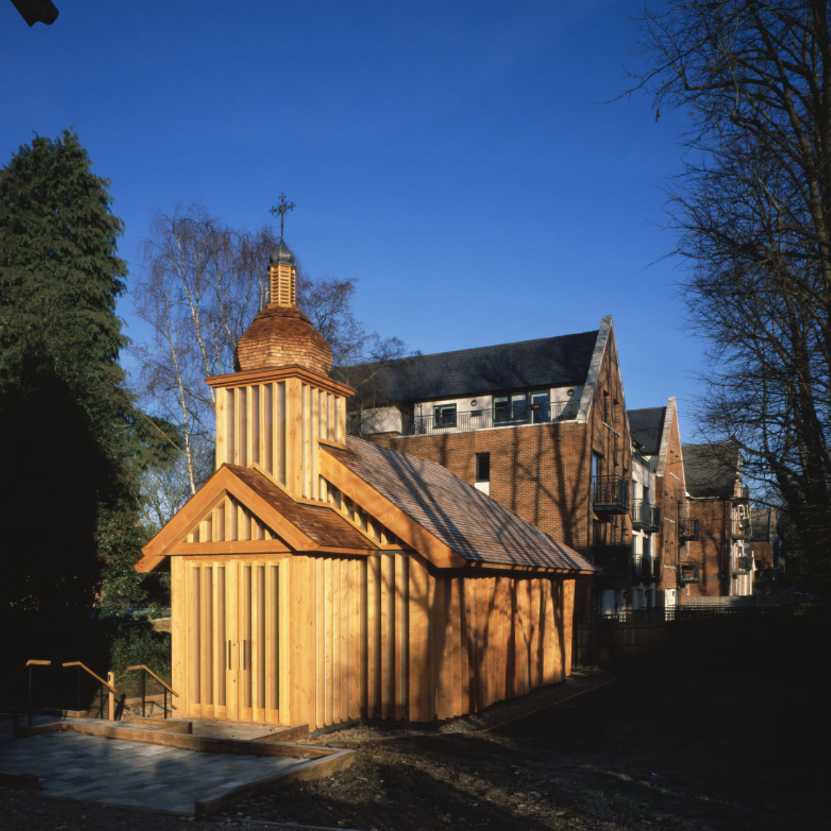 This new build wooden church was commissioned by the Holy See of Rome for the Belarusian Diaspora Community in London. It has been designed to serve as a reminder of the traumatic loss of a great number of rural settlements in the country throughout the 20th century.